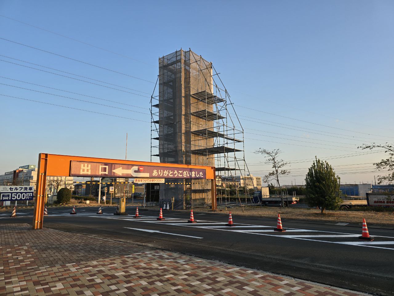 先日、浜松市にて、看板改修用足場の組立がありました。